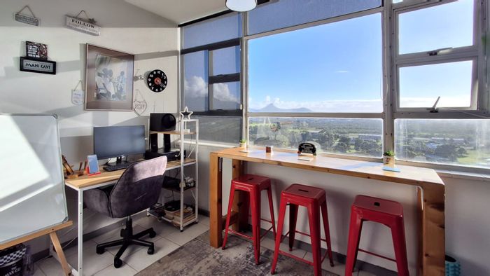 Elevated city living with panoramic views from the 18th floor in desirable Mark Heights, Goodwood — two-bedroom, open-plan home with communal pool and secure parking.