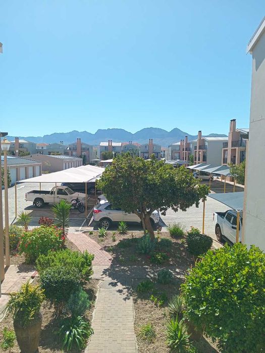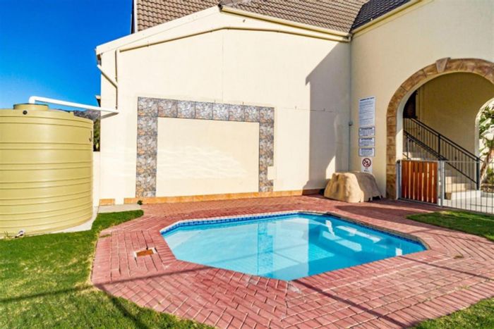 Wake up to Hottentots Holland Mountain views from a private balcony in this first-floor apartment, with open-plan living, communal pool, storage and two bedrooms, one bathroom and 24-hour security.