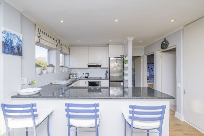 Coastal, mountain‑framed living in Gordon's Bay — walk to harbourside beach and Helderberg trails. Renovated open-plan kitchen with Smeg gas stove; two bedrooms, automated garage.
