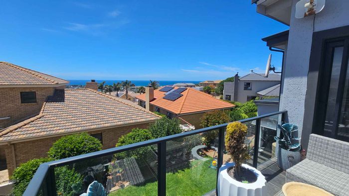 Seaside executive retreat with uninterrupted ocean views and rooftop patio for panoramic entertaining; braai room, solar panels and automated double plus high-volume garage. Four bedrooms, 3.5 bathrooms.
