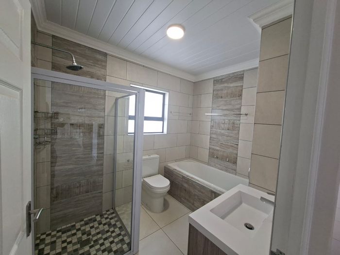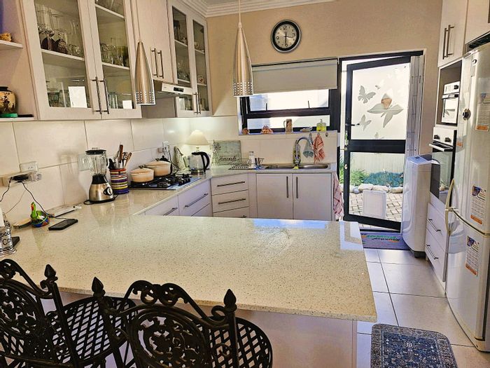 Effortless family living in Hartenbos Heuwels, just 2 km from Hartenbos Beach and upcoming Garden Walk — private balcony with Outeniqua Mountain views, three en-suite bedrooms and double garage.