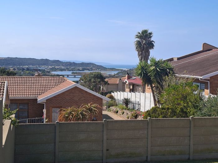 Front-porch river-mouth views and crisp ocean air in quiet Hartenbos Heuwels, open-plan living with built-in braai, modern gas kitchen, expansive garden; 3 beds, 2 baths, double garage.