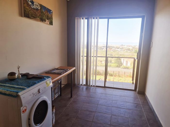 Panoramic ocean views from Mossel Bay past Voëlklip to Herolds in Hartenbos Heuwels; open-plan living spilling onto a braai-equipped entertainment patio, flatlet, garden, 3 beds, 2.5 baths.