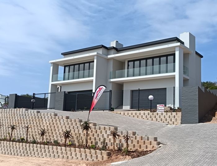 Entertainer's dream on Hartenbos Heuwels northern slopes, offering panoramic sea, river and mountain views, open-plan living with modern kitchen and balcony braai; three bedrooms, 2.5 baths, double garage.