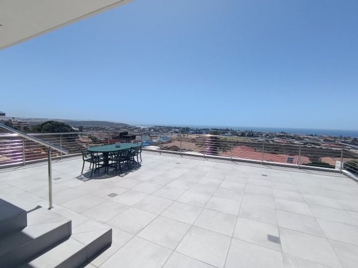 Enjoy coastal living in Hartenbos — minutes from beach and town. Entertain on a rooftop patio with panoramic ocean and mountain views; four bedrooms, three-and-a-half bathrooms, triple garage.