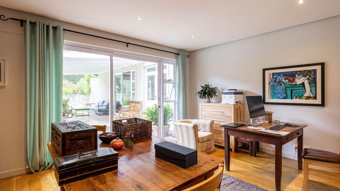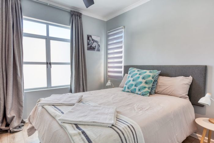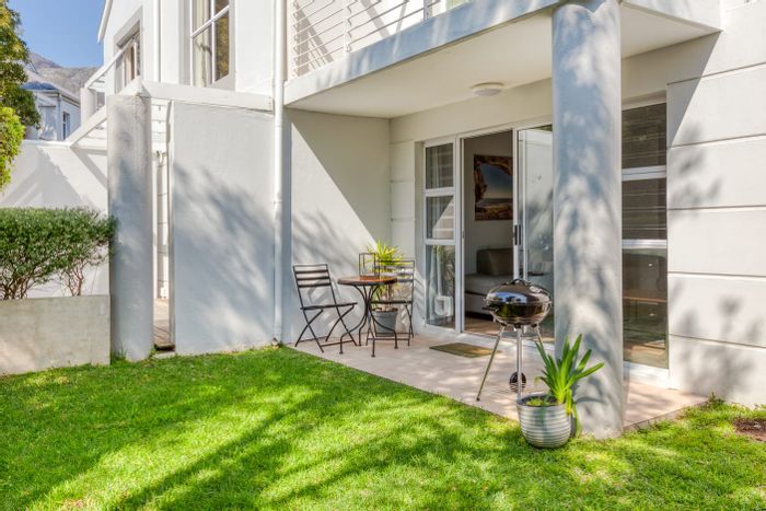 Relaxed coastal living in Hout Bay's vibrant heart, steps from the beach, with an open-plan interior, private garden and mountain views—fully furnished three-bedroom, two-bath with secure parking.