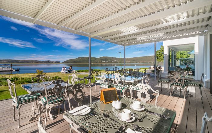 Experience waterfront living on Knysna Lagoon — steps from restaurants and marinas — with 300° Heads views, pool, expansive view deck, five en-suite bedrooms plus separate one-bed unit.