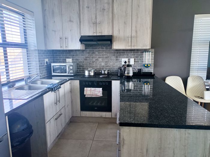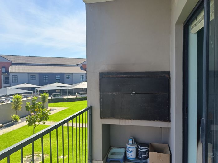 Enjoy modern Langeberg Ridge living near shops and schools; open-plan kitchen opens to a balcony with built-in braai. Two-bedroom, one-bath apartment with two secure parking bays.