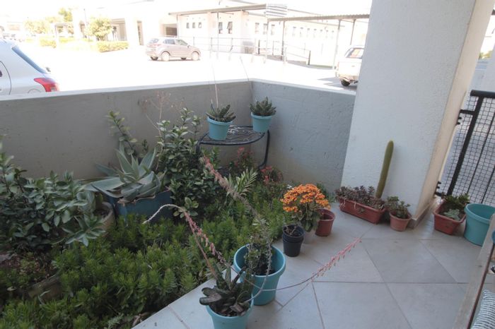 Enjoy active, secure estate living in Buh-Rein Estate's Northern Suburbs of Cape Town, with balcony featuring built-in braai, open-air gym and two-bedroom, two-bath end-unit with covered parking.