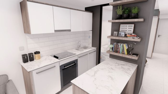 Investors' dream: low-maintenance studio living in a secure estate near Stellenbosch with clubhouse, pool and engineered-stone kitchen. Includes one bathroom and two parking bays.