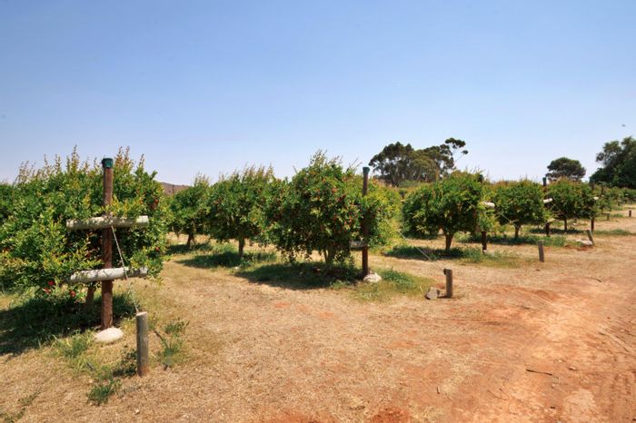 Self-sufficient smallholding along the R62 tourism route with established orchards and on-site peach-pip oil processing equipment, solar-fed borehole and tanks — two bedrooms, three bathrooms and double garage.