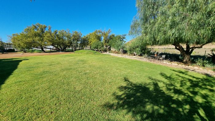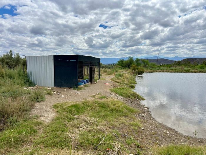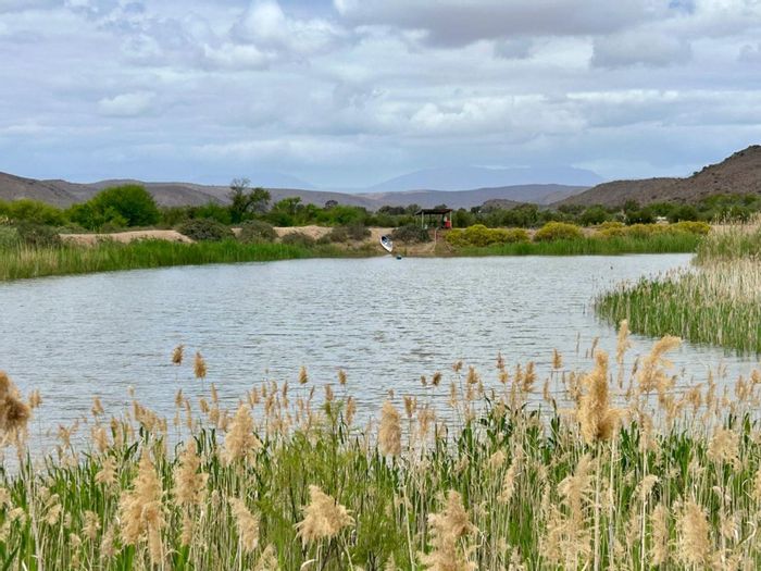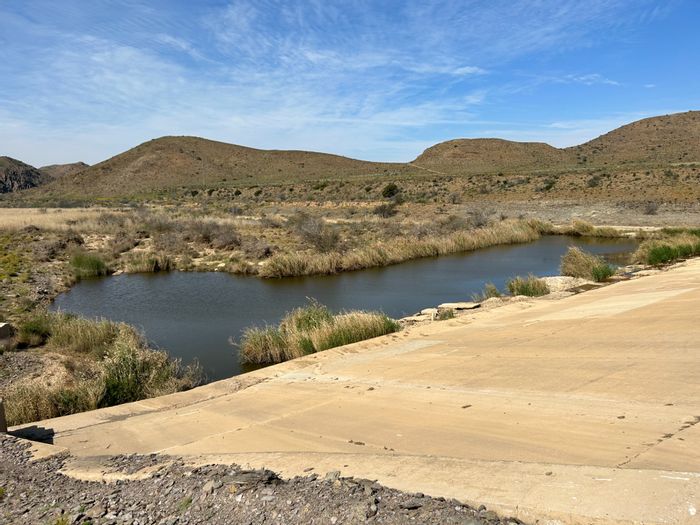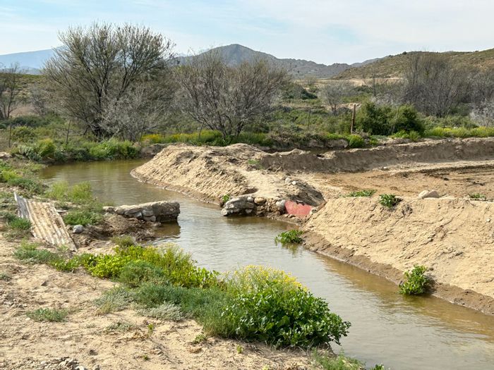 3478 ha Lusern Farm in Klein Karoo with 270 ha under flood irrigation, houses, sheds, and Groot River access.