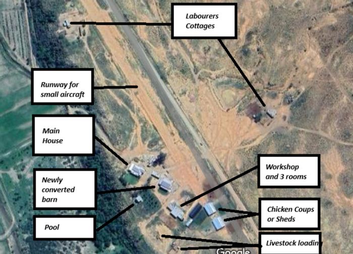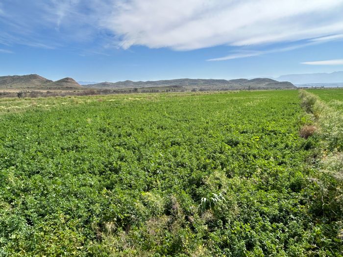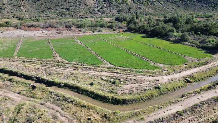 Commercial Lucerne farm of 3640ha with irrigation, houses, barns, and water rights in Klein Karoo.