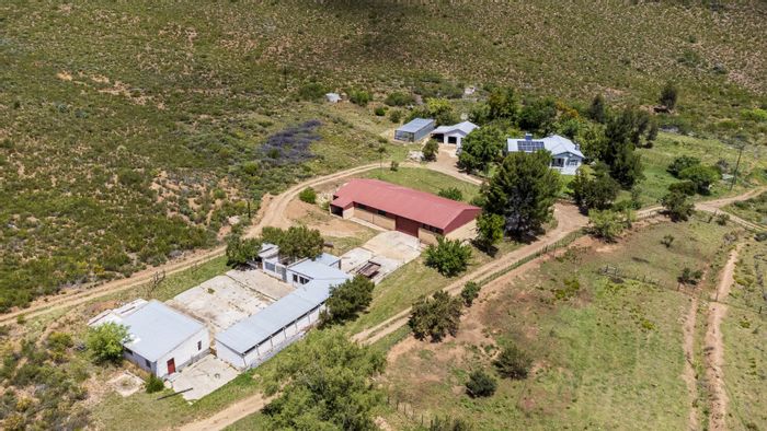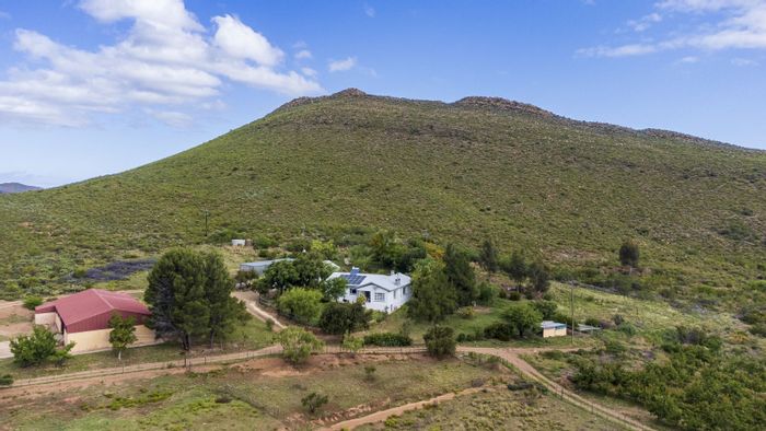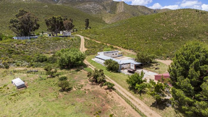 820ha farm near Ladismith: 3 en-suite bedrooms, large barn with 2-bedroom flat, diverse landscapes, and business potential.