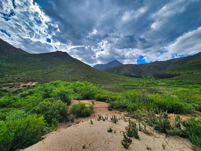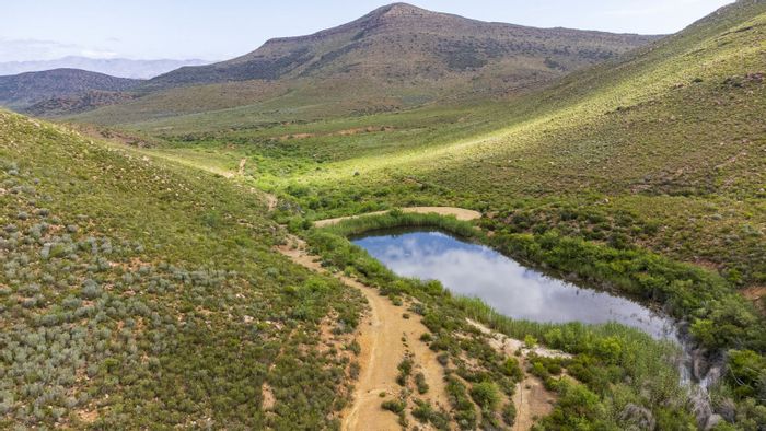 Create a private Klein Karoo game reserve between Riversdale and Ladismith — 309-hectare untouched natural vegetation with borehole, 20MB internet, secure game fencing and expanding wildlife.