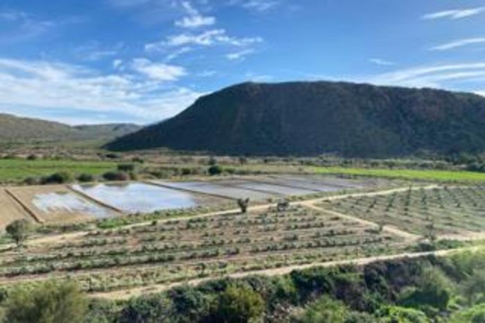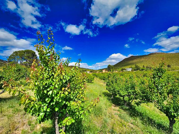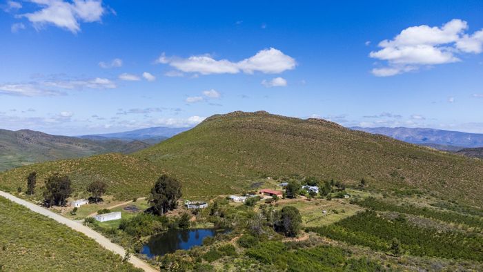 223-hectare farm near Ladismith offers diverse agricultural potential, ample water resources, and multiple living accommodations.