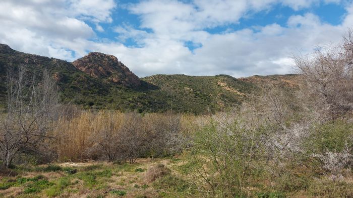 Escape to a 49ha mountain retreat at the foot of the Swartberg on the R62 — ideal for hiking, camping and a weekend cottage, 1.5 hours from George, 30km from Ladismith.
