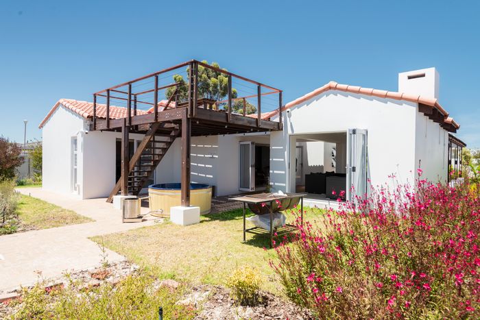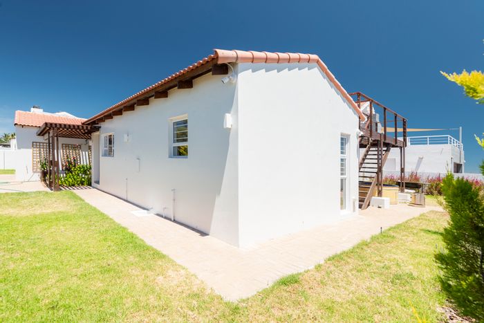 Wake to lagoon breezes in sought-after Langebaan — relaxed coastal living with a wooden deck, enclosed entertainment patio and private jacuzzi; three bedrooms, two bathrooms and double garage.