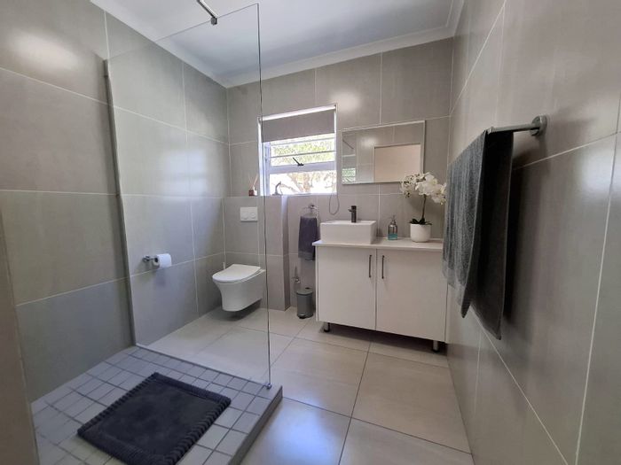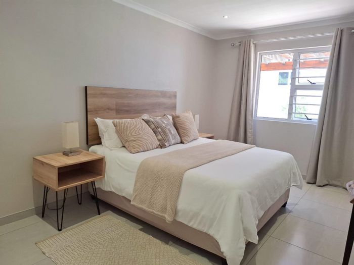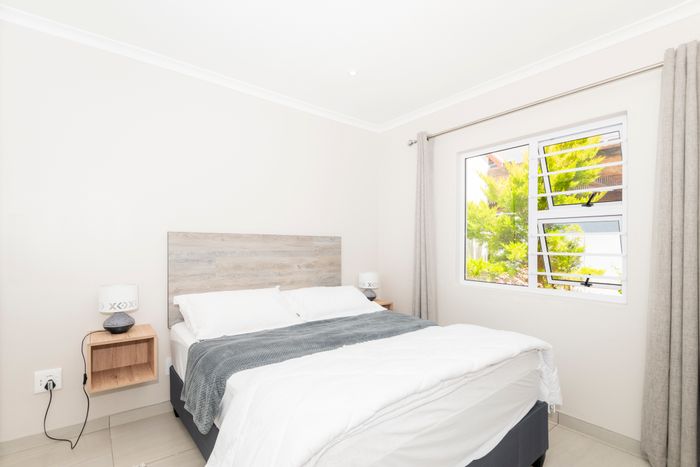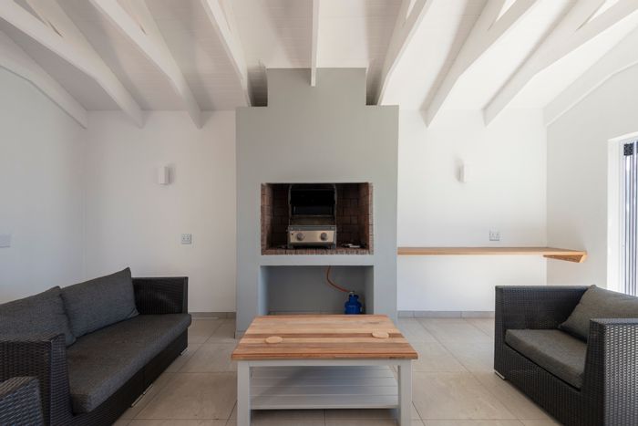 Enjoy modern, low-maintenance living near lively shops and restaurants — first-floor apartment with open-plan kitchen, indoor built-in braai/fireplace, two bedrooms and two bathrooms.