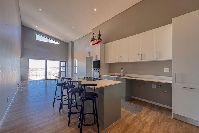 Coastal lock-up-and-go living with panoramic Langebaan Lagoon sunsets, walking distance to Laguna Mall; top-floor, north-facing apartment featuring triple-volume ceilings and a balcony with indoor braai. Two beds, two baths.