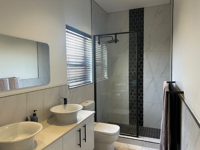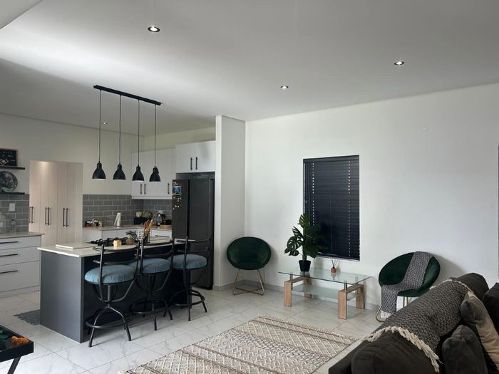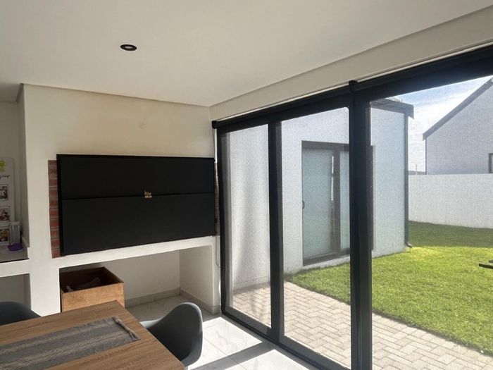 Refined modern living in a prestigious security estate minutes from Club Mykonos and private schools; separate braai room opening to a low‑maintenance garden. Three bedrooms, two bathrooms.