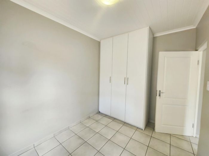 Embrace relaxed cul-de-sac living in Bergzicht, walking distance to Spar and the CBD, with a sunny east-facing patio, private garden, modern kitchen, double garage, three beds, two baths.