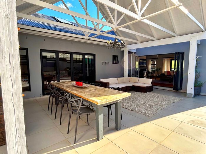 Entertainer’s home in Mount Royal Golf & Country Estate, Malmesbury — patio with built-in braai, off-grid solar, 25,000L/hr borehole and uninterrupted farmland views. Three bedrooms, three baths.