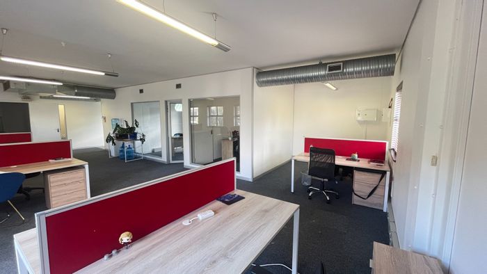 Work from a prestigious, well-connected address offering bright, collaborative first-floor offices with upmarket finishes and private kitchen — backed by hybrid solar and generator power; one bathroom, parking available.