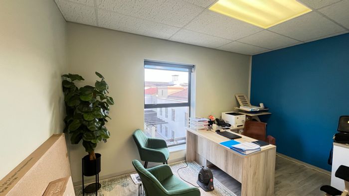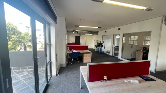 Elevate your team's presence in Century City's Boulevard Place, Milnerton — vibrant business precinct with terrace overlooking a courtyard, open-plan workspace, three private offices, kitchenette, shower and secure parking.