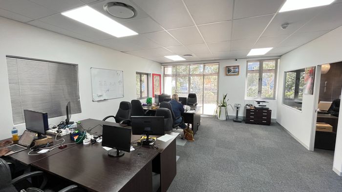Prime Century City office with N1 visibility and Table Mountain views, canal-side canteen and solar-backed power. Flexible 236 m² open-plan space with private offices and shared reception.