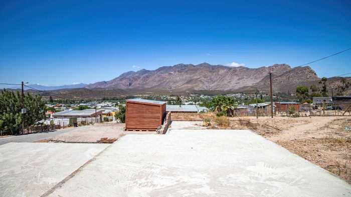 Relaxed small-town Montagu living with sweeping mountain views from a semi-wrap porch, loft charm, water-wise garden and splash pool; open-plan living, three bedrooms, two bathrooms and garage.