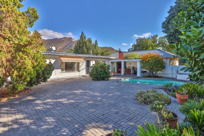 Embrace relaxed Montagu cul-de-sac living with pergola veranda and mountain-vineyard views; versatile layout includes three-bedroom main plus two self-contained units and private indoor pool.