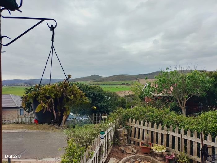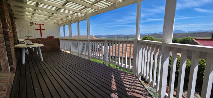 Relaxed family living in Fraaiuitsig, Klein Brak River — north-facing home with balcony offering sweeping mountain and farmland views. 3 beds, 2 baths, double garage.