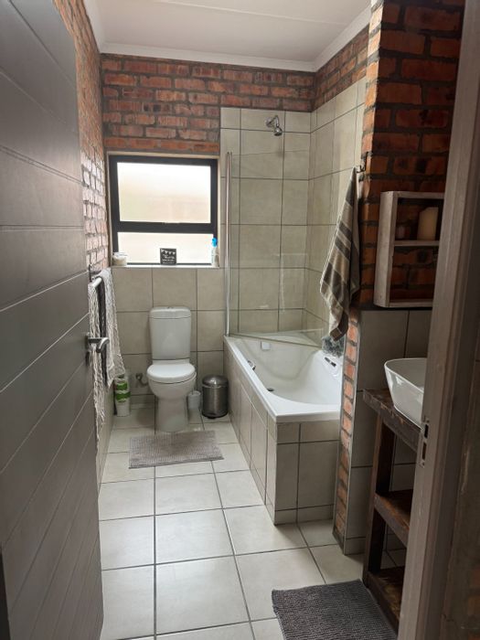 Relaxed family living in Klein Brak with expansive pet-friendly garden and covered patio with built-in braai — move-in ready, three bedrooms, 2.5 bathrooms and double covered parking.