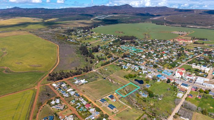 1100m² corner stand in Napier, Overberg. Priced at R695,000. Ideal for home construction with potential for gardens.