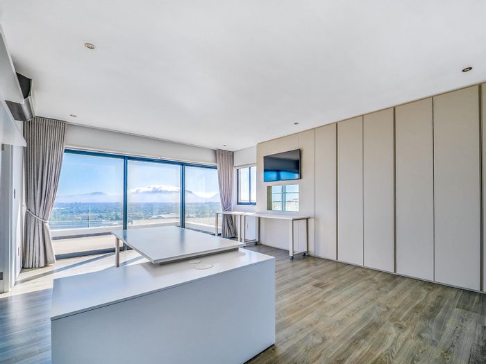 Elevated hilltop living in Plattekloof with panoramic Table Mountain and Table Bay views, turnkey home featuring a full solar system, four bedrooms, 4.5 bathrooms and double garage.