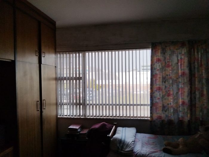 Spacious Parow apartment with huge balcony overlooking Voortrekker Road opposite Truworths head office; secure palisade-fenced complex, controlled-access lock-up garage, convenient to amenities and bus/taxi route to CBD, 2-bed, full bath.