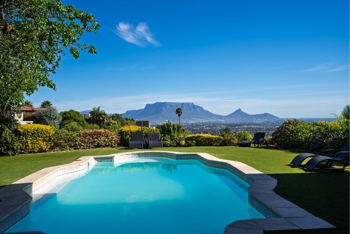 Spacious family retreat on Plattekloof's Tygerberg slopes, ideal for multigenerational living; pool, pizza-oven entertainment room and Table Mountain views. Seven beds, 4.5 baths, triple garage.