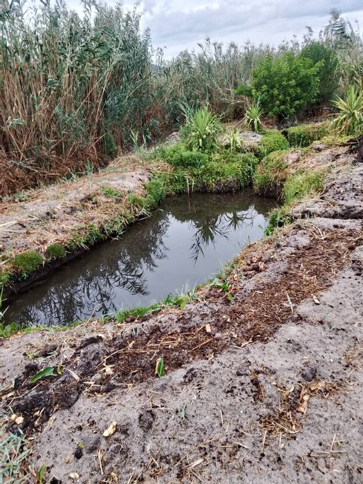 Live self-sustainably on the West Coast near Verlorenvlei—9951 m² semi‑agricultural plot with daily running water, shared dam and rich birdlife; house requires TLC (plans available).