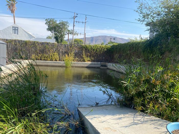 Tranquil country living in Prince Albert with mountain views, expansive garden, borehole-fed irrigation and splash pool, plus separate studio convertible to a cottage. Two bedrooms, two bathrooms, single garage.