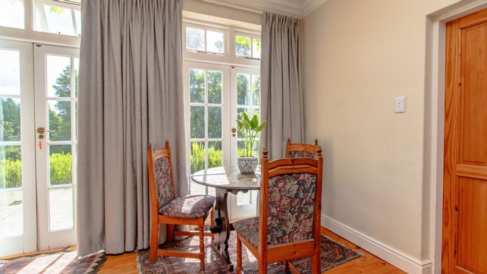 Live a private 25‑hectare hillside lifestyle 12km from Sedgefield with sweeping Swartvlei Estuary and mountain views; recently re-thatched main house, pool, five bedrooms, three bathrooms.