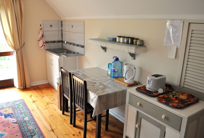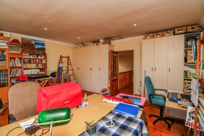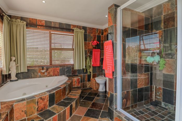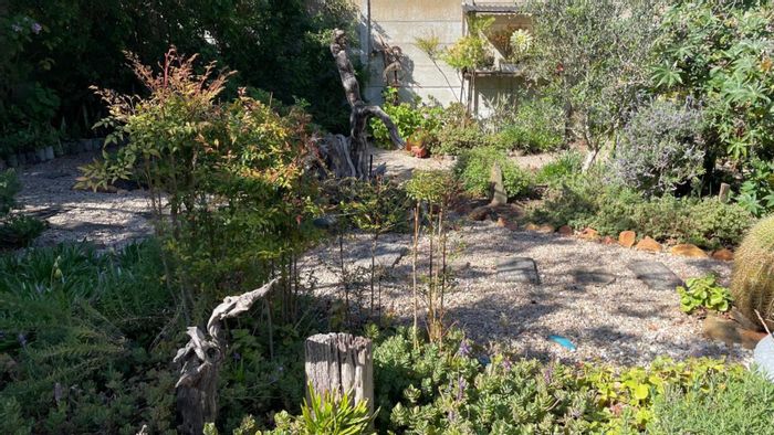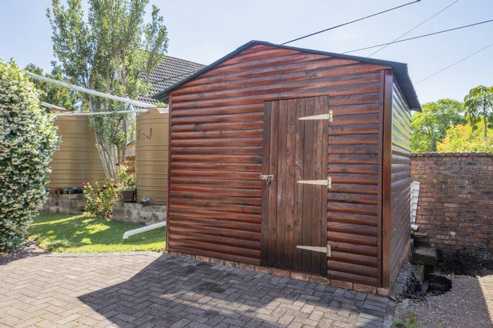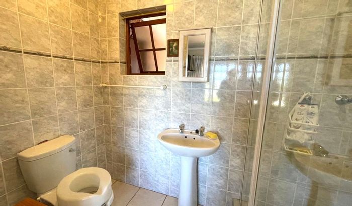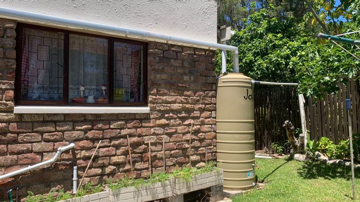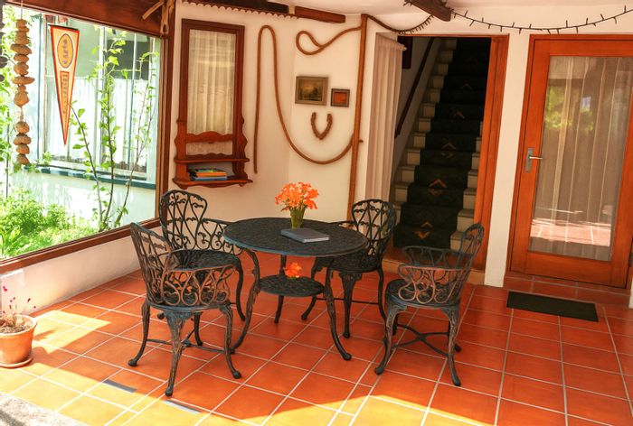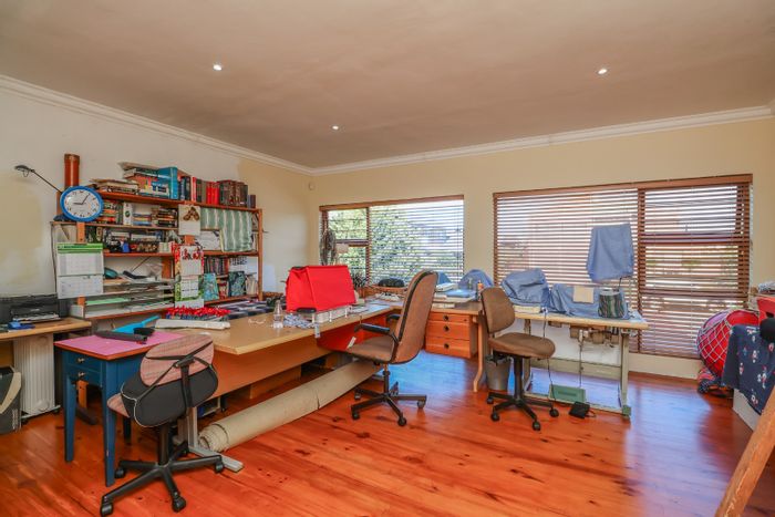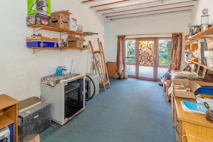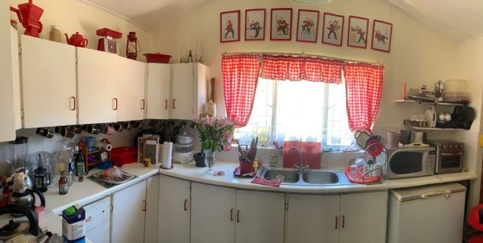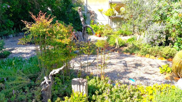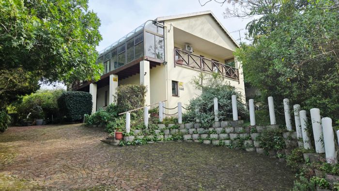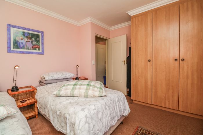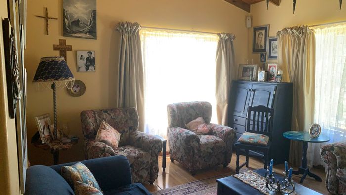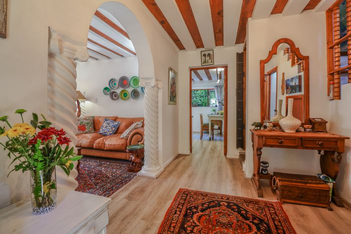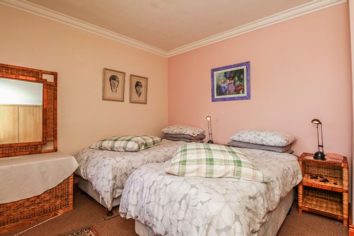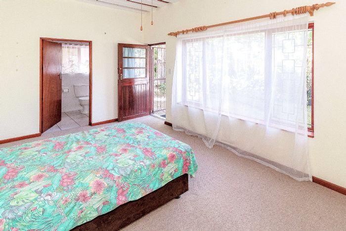 English country charmer in upper Groenvallei, Sedgefield — spring-bloom garden, bay and dormer windows, fireplace, patio and view balcony; self-contained upstairs ideal for B&B. 3 beds, 2 baths.