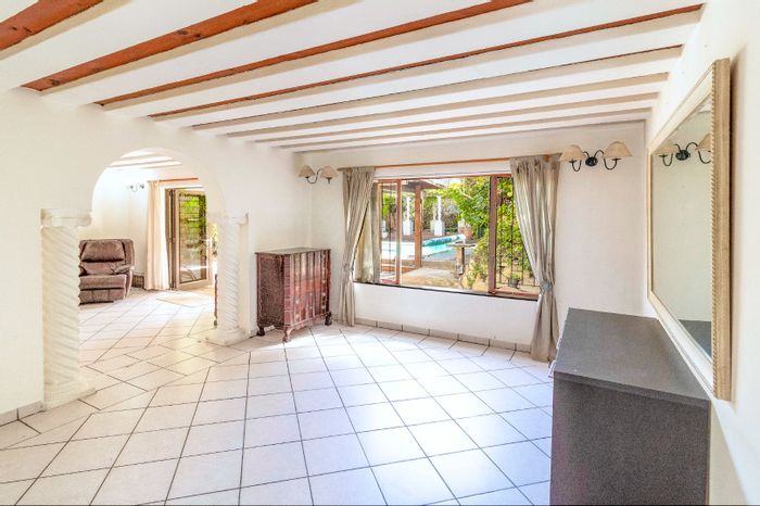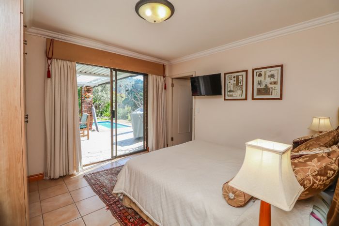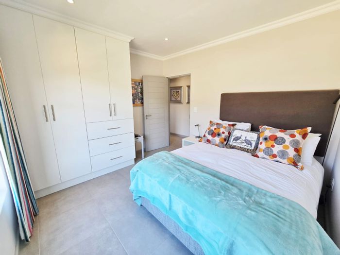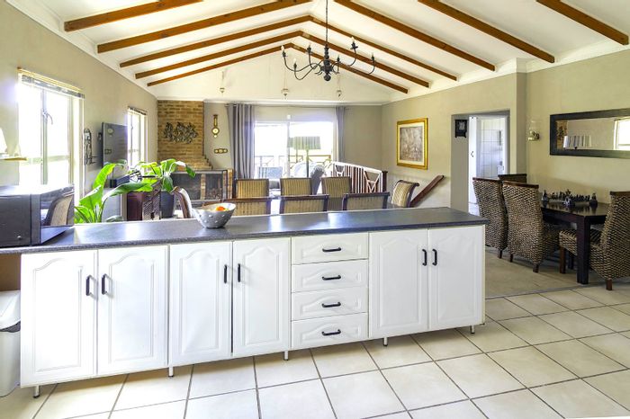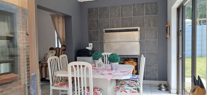 Relaxed lakeside living in secure Lakeview Estates, steps from Groenvlei Lake — open-plan entertaining flows to a glass-enclosed patio with built-in braai and a private garden.