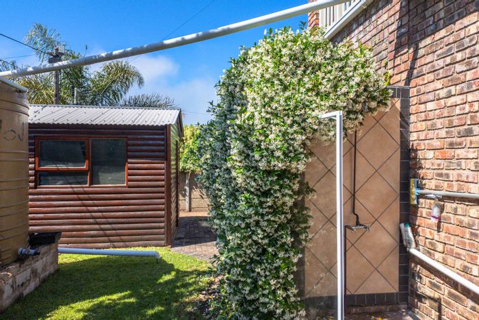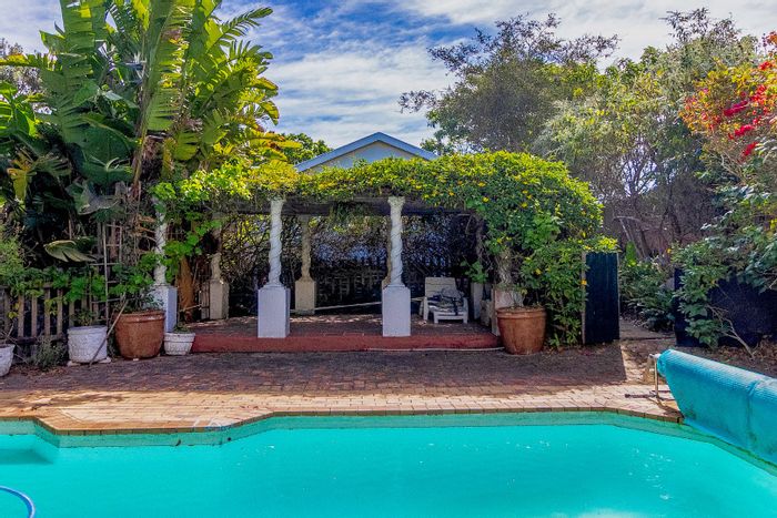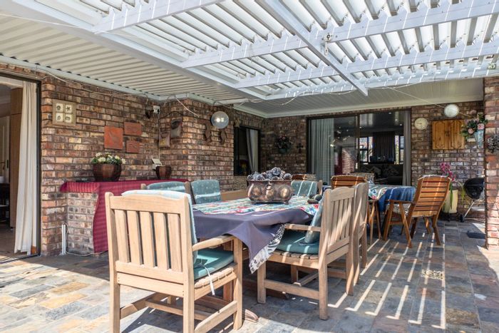 Relaxed coastal living in the heart of Sedgefield, steps from beaches, lagoons and shops — open-plan interiors, patio braai and private garden; 4 beds, 3 baths, double garage.