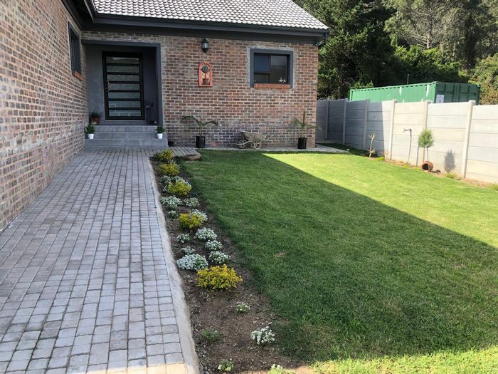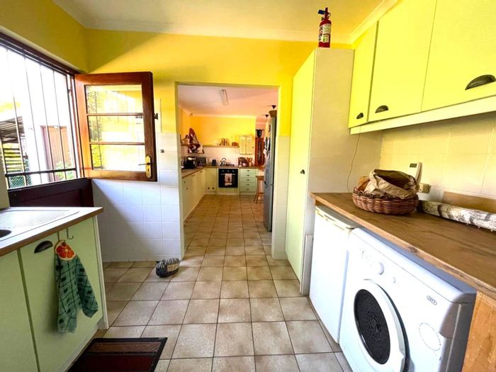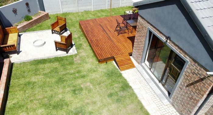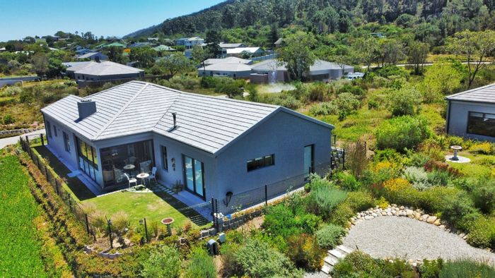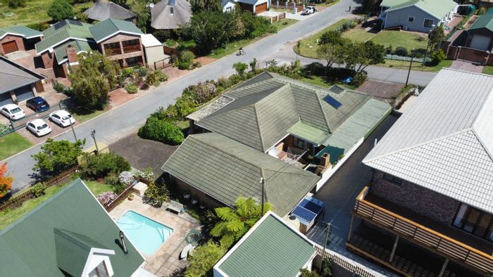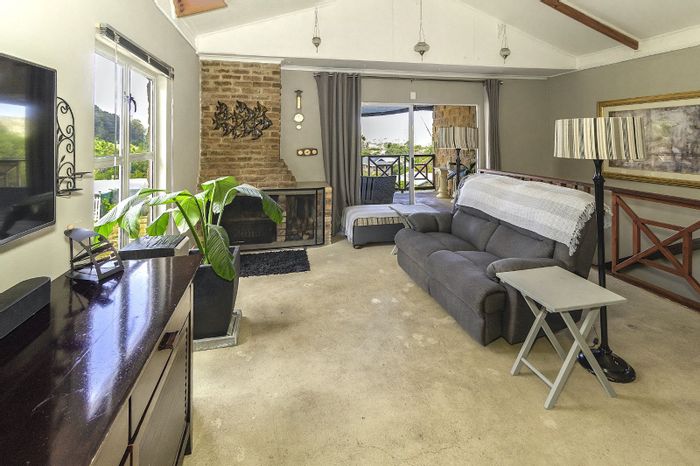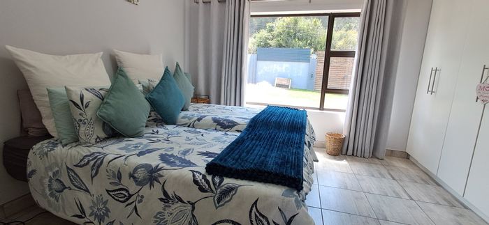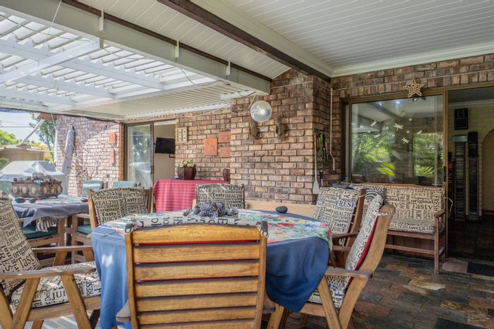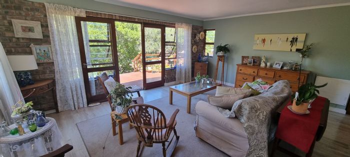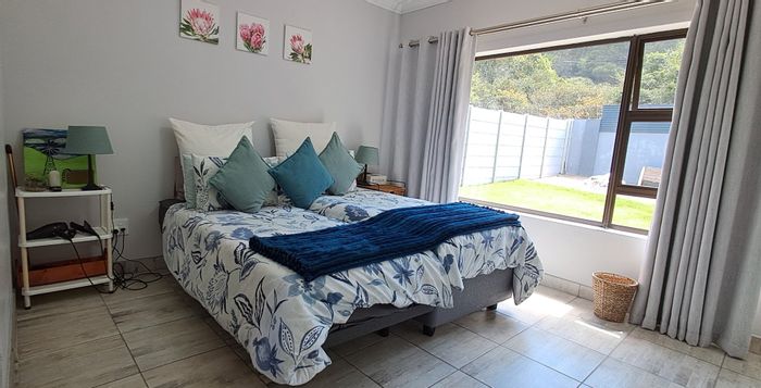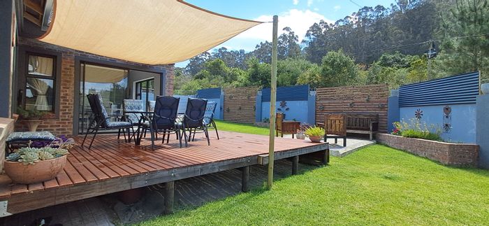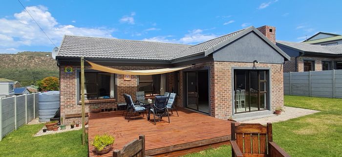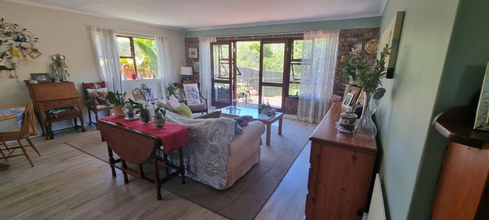 Relaxed coastal living on the Garden Route, close to beaches, lakes and mountains, with an indoor braai opening to a deck and garden—three bedrooms, two baths, double garage.