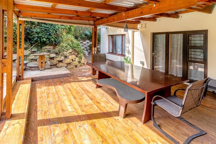 Embrace relaxed Garden Route living in Groenvallei Sedgefield — an elevated timber retreat with lagoon glimpses, expansive deck for sundowners and rustic timber charm; three bedrooms, two bathrooms.