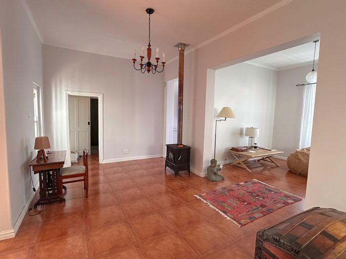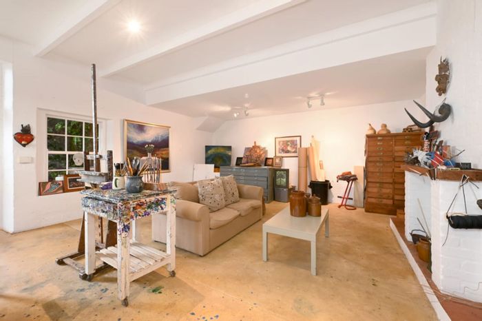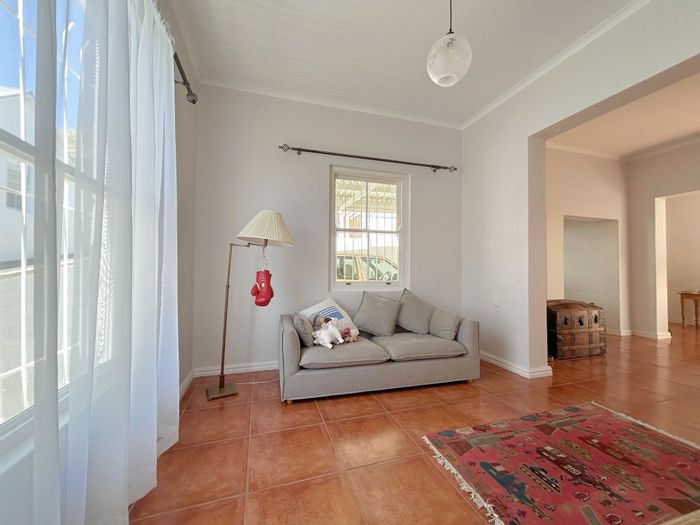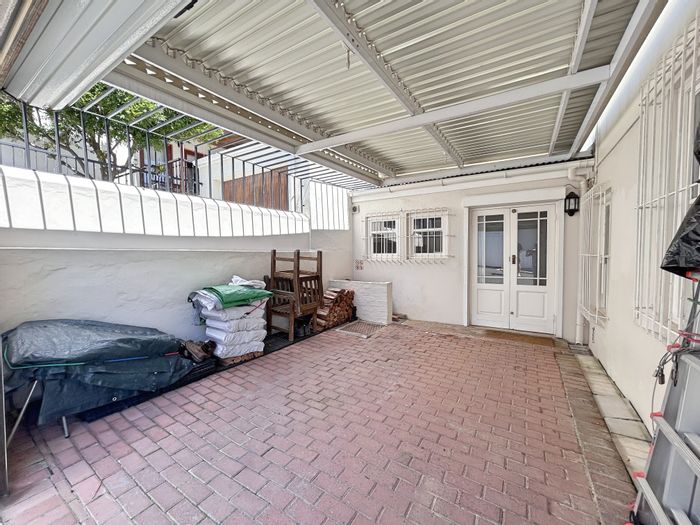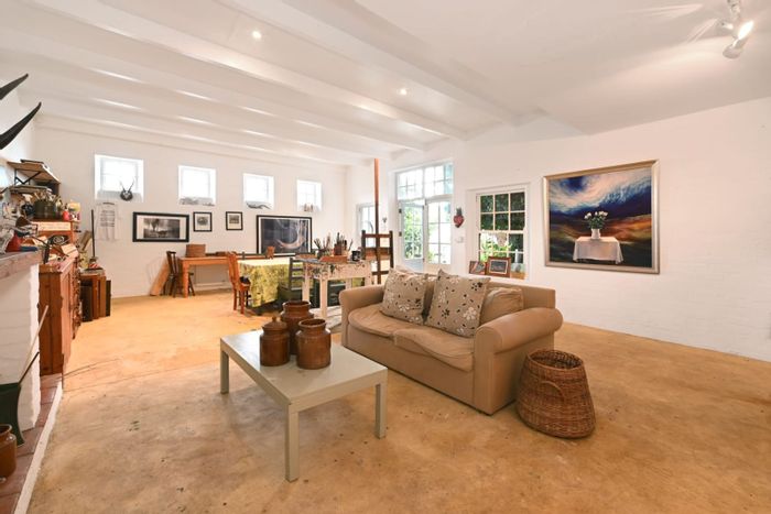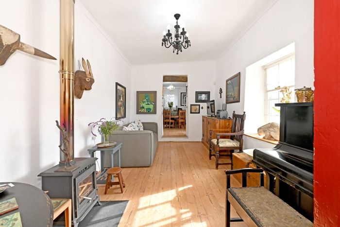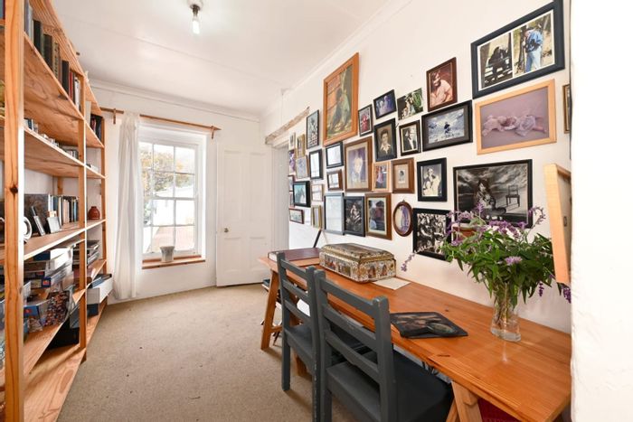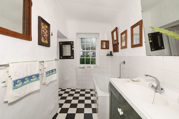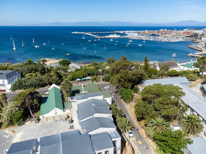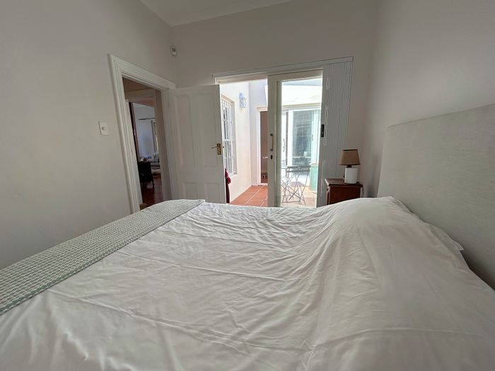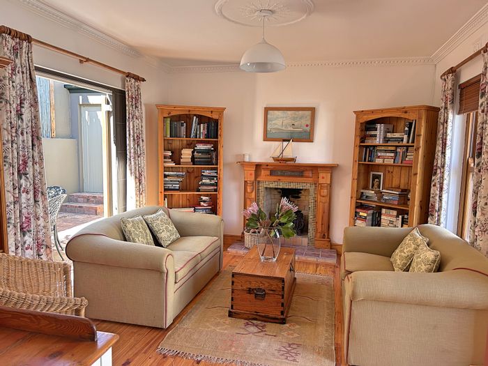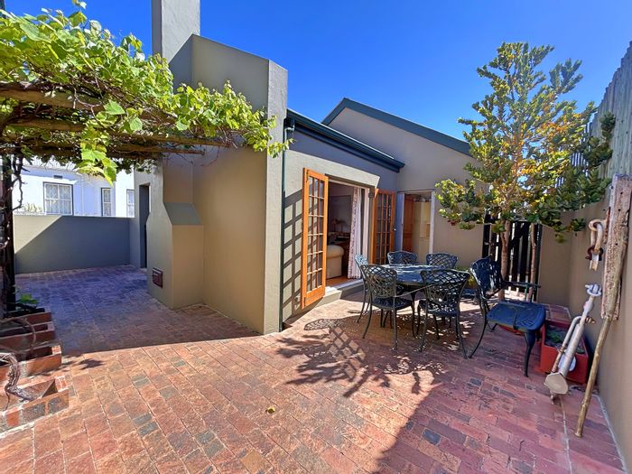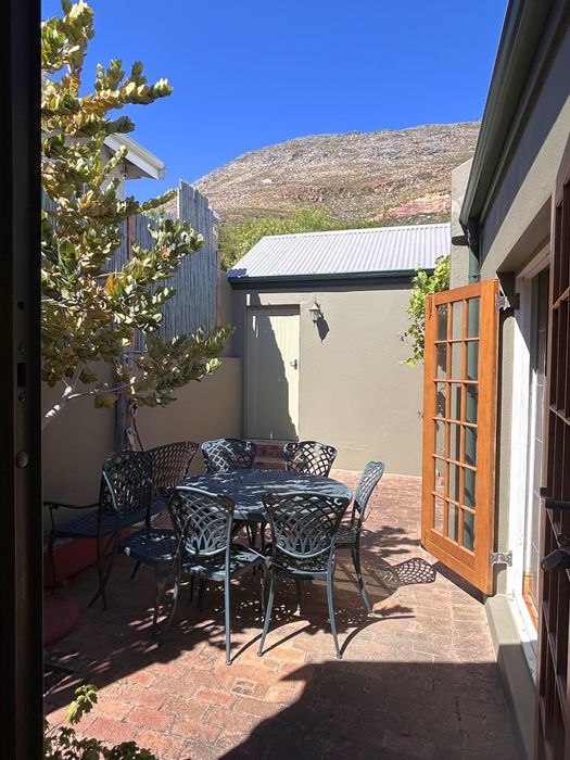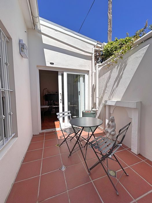 Historic Simon’s Town retreat with lush garden, two courtyards overlooking the naval base and double-volume studio with fireplace — 2 beds, 2 baths, tandem garage.