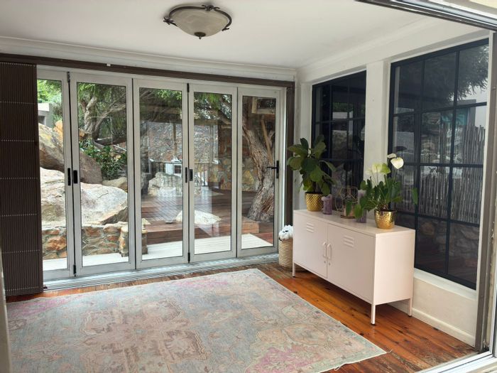 Seaside cottage steps from Seaforth and Boulders beaches, light-filled open-plan living and a charming courtyard, generous loft storage and enclosed carport — two double bedrooms, one bathroom.