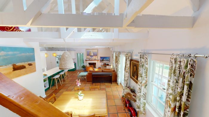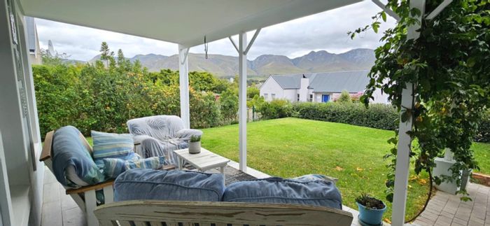 Secluded Stanhaven Estate home offering elevated mountain views, open double-volume living and expansive entertainment patio with covered braai and pool; four-bedroom layout, loft studio, minutes from Stanford village.