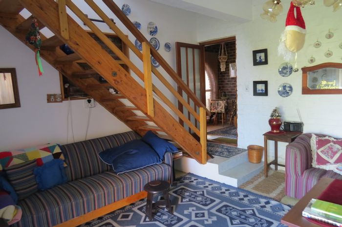 Enjoy river sunsets from a balcony in Stilbaai East: low-maintenance facebrick double-story with plastered rondawel and built-in braai, ideal for guests or rentals. 3 beds, 2 baths.